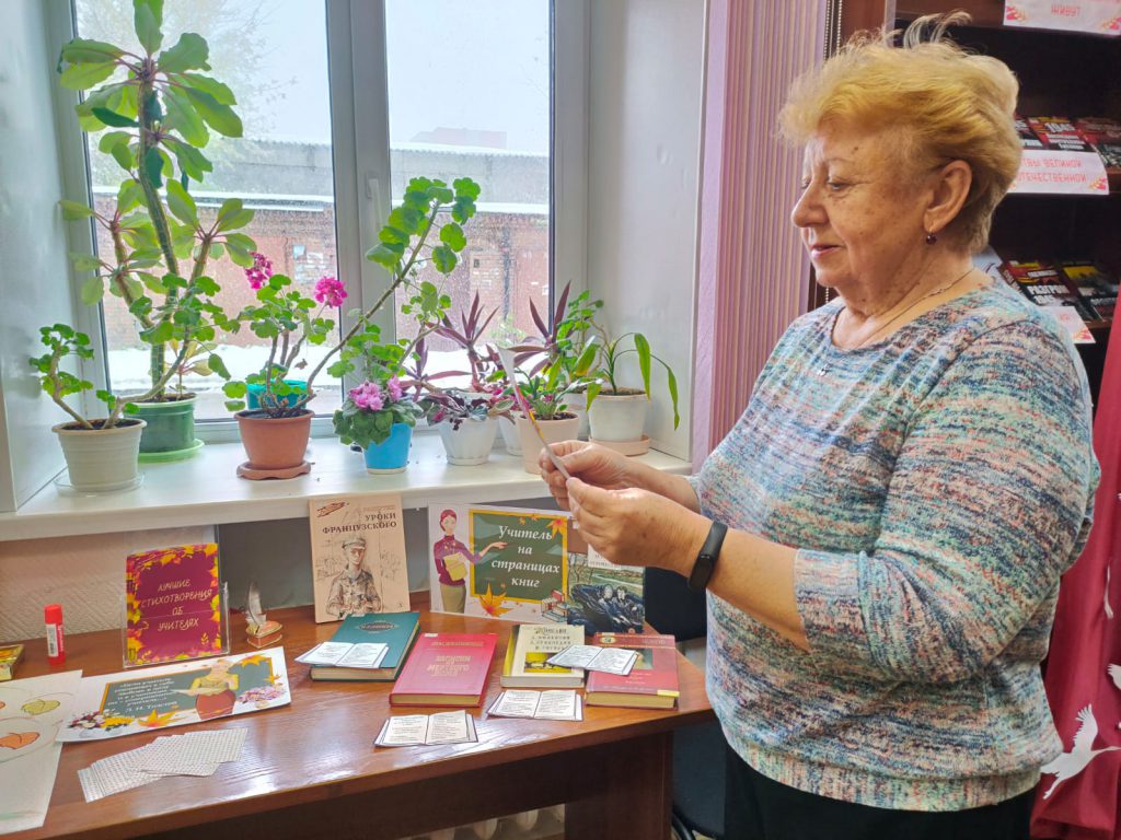 К акции была подготовлена книжная выставка с одноимённым названием.  Все желающие могли познакомиться с представленными книгами русских и советских авторов о школе, учениках и личности учителя в литературе, а также почитать лучшие стихотворения об учителях у выставки. Более юные читатели отгадывали филворды с зашифрованными словами на школьную тему. Особой популярностью пользовалось дерево признательности, на листочке которого можно было написать тёплые добрые слова-пожелания любимому учителю и всем учителям в целом.