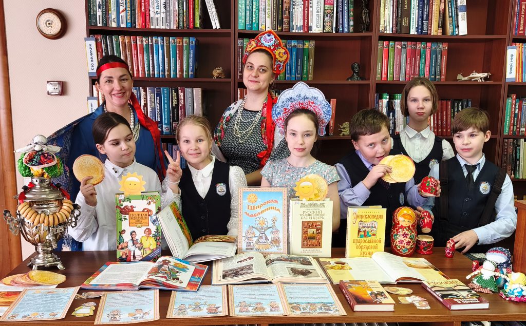 А ещё ребят ждала книжная выставка «Широкая масленица»! Там можно было полистать книжки с красочными иллюстрациями, узнать старинные рецепты блинов и побольше разузнать о весёлых масленичных традициях.