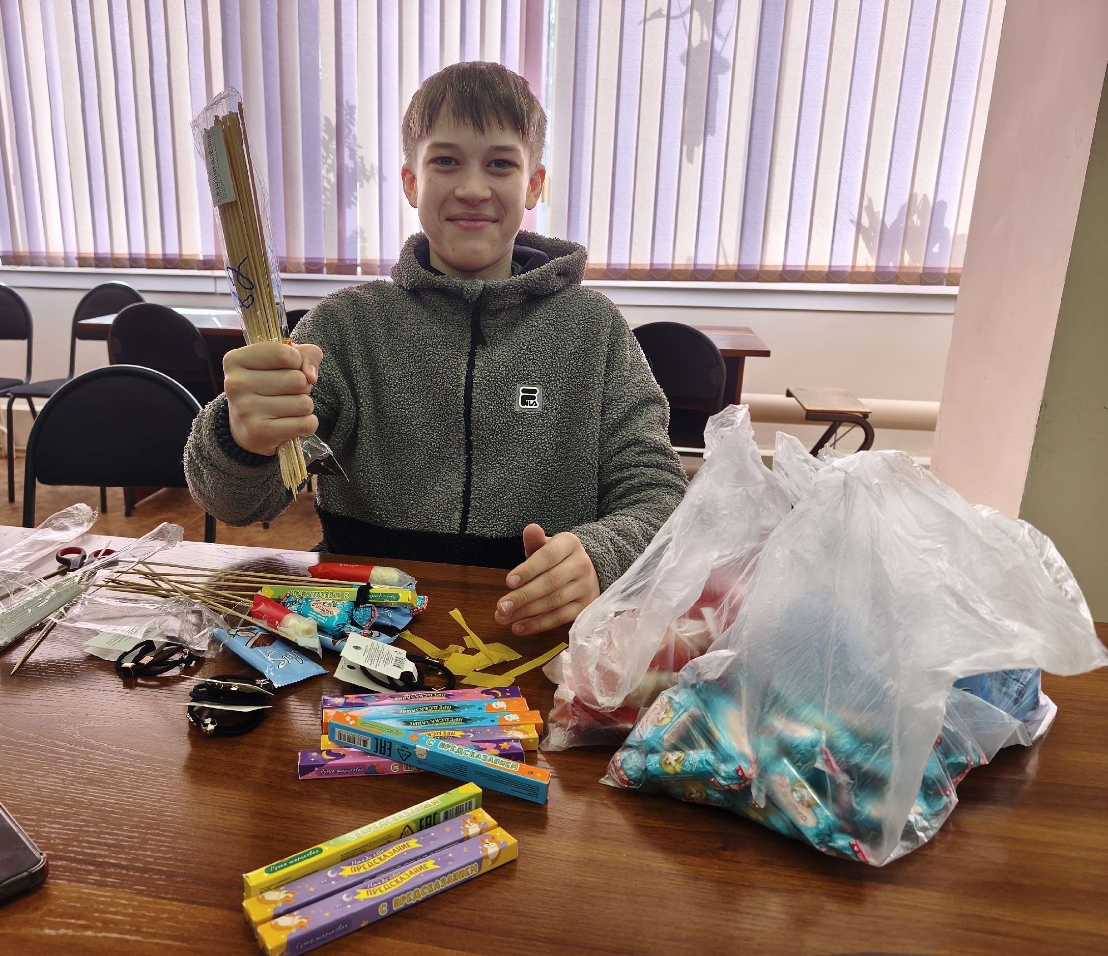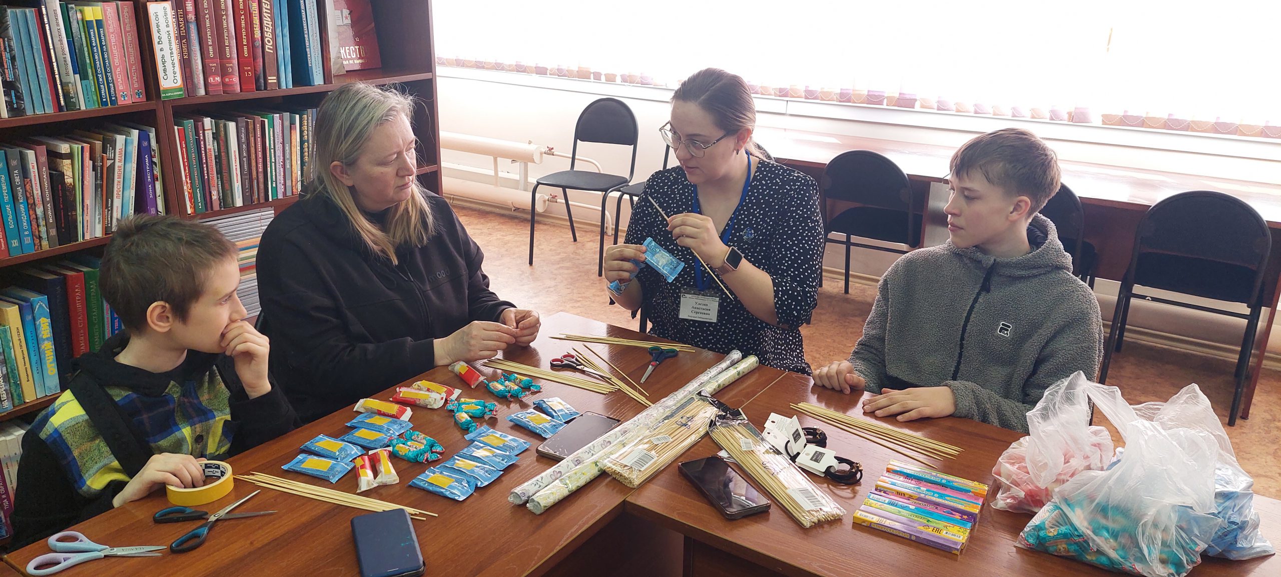 В библиотеке имени И. М. Лаврова прошёл уютный мастер‑класс «Букет из конфет». Небольшая компания увлечённых гостей погрузилась в атмосферу творчества и открыла для себя искусство создания необычных композиций.