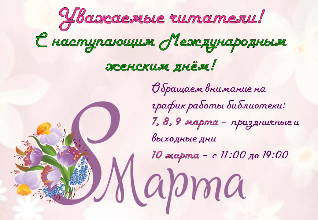 7, 8, 9 марта библиотека им. И. М. Лаврова не работает.